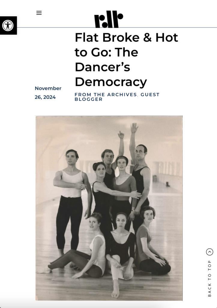 Next Image Flat Broke and Hot to Go: The Dancer’s Democracy Image of a guest blog for Repertory Dance Theatre Image of a guest blog for Repertory Dance Theatre